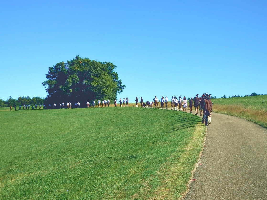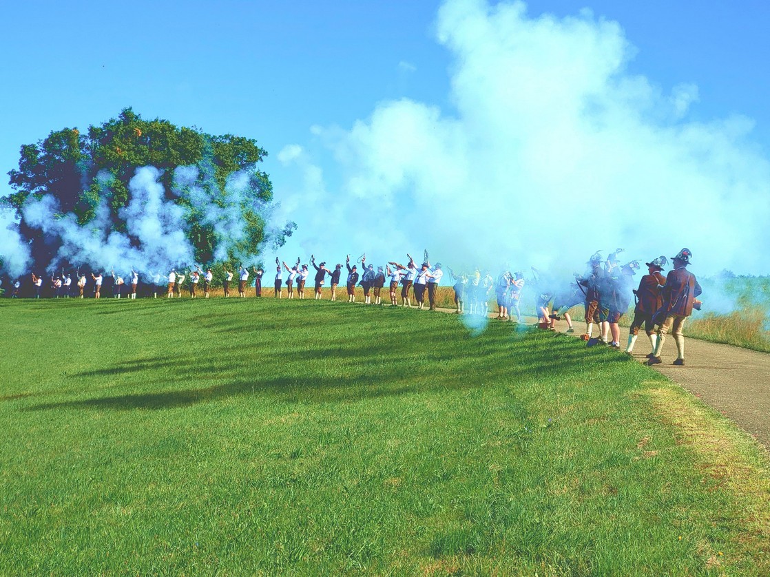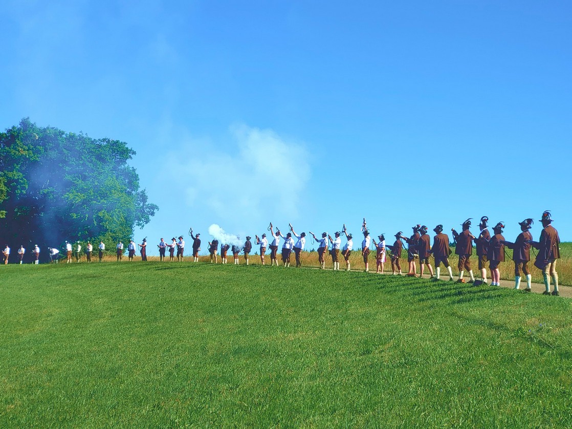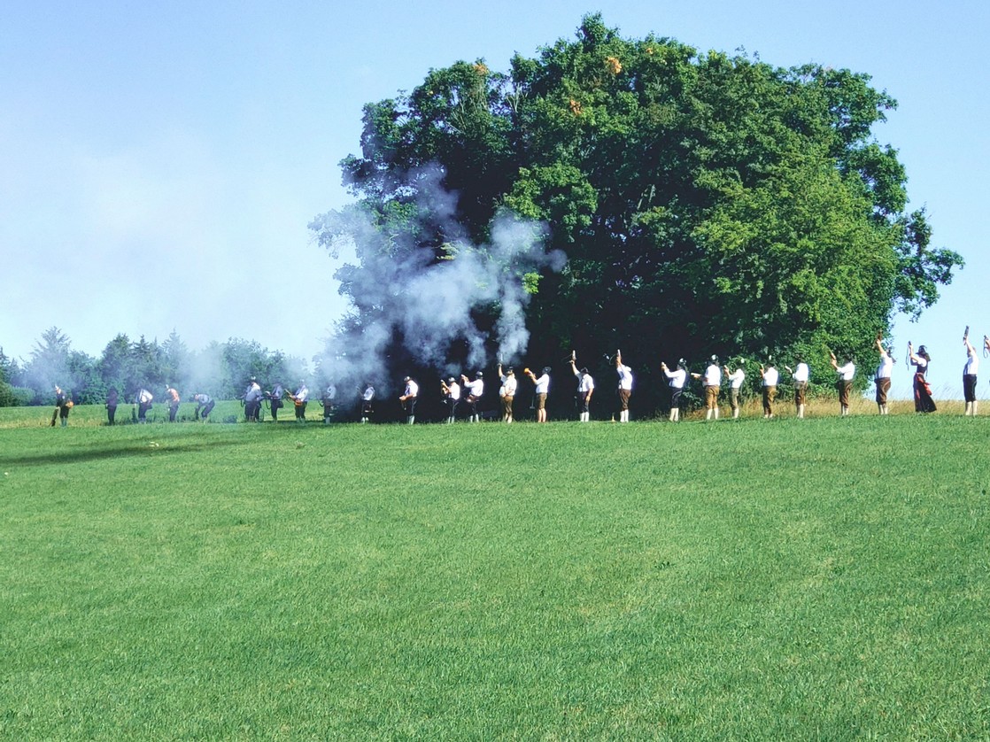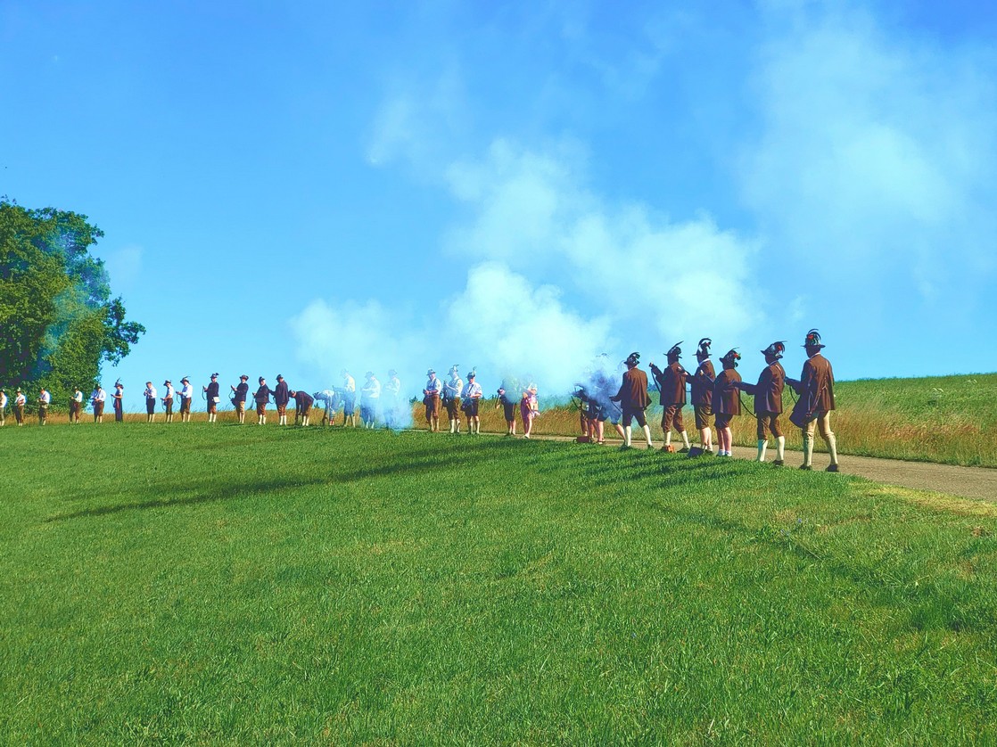 Nach der Kaffeepause stellten sich ca. 60 Böllerschützen auf, um die Böllergruppe der Altschützen zu würdigen. In fünf Serien feuerten die Böller ihren Gruß: 1. Reihenfeuer beginnend mit dem ersten Böllerschützen rechts, 2. Reihenfeuer beginnend mit den Kanonen, 3. Salut, 4. Gegenläufiges Reihenfeuer von außen nach innen, im Anschluss die Kanonen und 5. Salut